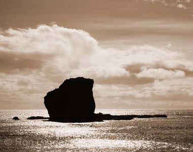 The sparkling light of the sea in late morning highlights Pu`upehe